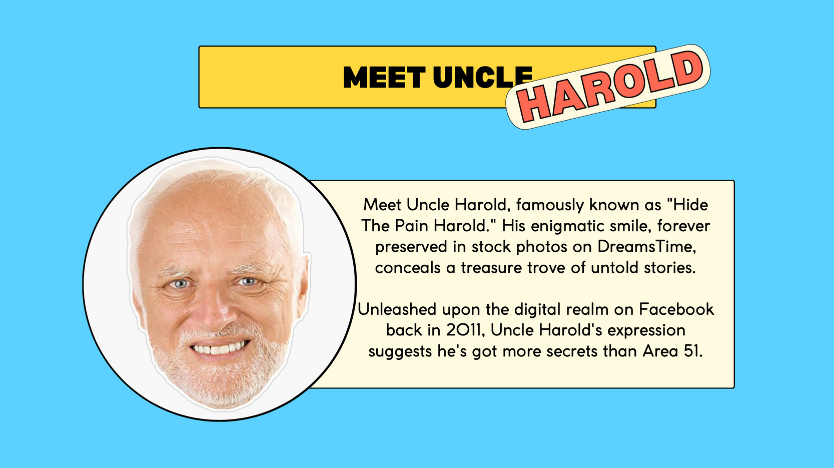Unleashed upon the digital realm on Facebook back in 2011, Uncle Harold's expression suggests he's got more secrets than Area 51.